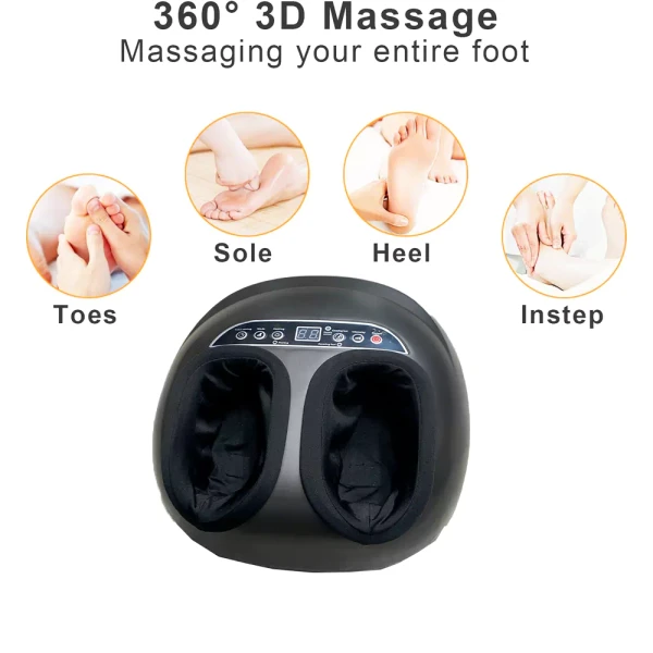 طراحی ۳۶۰ درجه: این ماساژور بهطور کامل و ۳۶۰ درجه پا را احاطه کرده و از تمام نقاط فشار برای ماساژ استفاده میکند. این طراحی باعث میشود ماساژ بهصورت یکنواخت و موثر در تمام نواحی پا انجام شود.