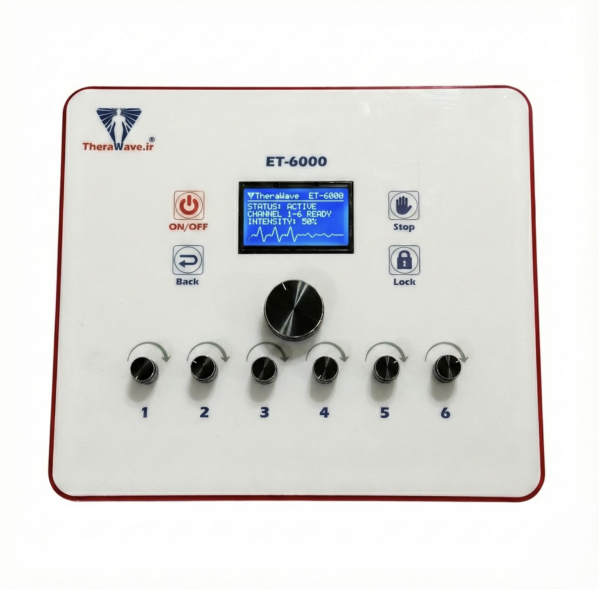 دستگاه الکترو تراپی فیزیوتراپی (Electro therapy) استیمولاتور شش کاناله برند تراویو TheraWave.یک دستگاه فیزیوتراپی پزشکی است که از انرژی الکتریکی برای درمان درد و ترمیم عضلات آسیب دیده، ضعیف یا بیمار استفاده می کند. این دستگاه با اتصال الکترودهای چسبنده به پوست بیمار، جریان الکتریکی ضعیفی را به پوست یا عصبها می فرستد. این جریان می تواند جریان خون را بهبود بخشید و الیاف عضلانی را تحریک کند. دستگاه الکتروتراپی برای اهداف مختلفی مانند آرامش تشنج عضلانی، جلوگیری از ضعیف شدن عضلات، افزایش دامنه حرکت، مدیریت درد مزمن یا سخت درمان پذیر، تسریع روند التیام زخم و انتقال دارو به کار می رود.